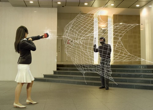 ・簡単な操作で瞬時に網が飛び出す防犯装置:ネットランチャー。
