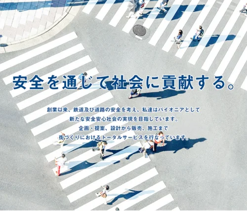 弊社は【交通事故ゼロ】を目標に、自動車や電車を目的地まで安全に導くことを通じて社会貢献しています。 同業者が多数存在する中、当時は存在しなかった「レールボンド」や「路面標示」を開発し、日本に広めました。現在も【業界のパイオニア】として、業界一の開発設備を完備し、人々の安全を守る製品の開発に注力しております。 |